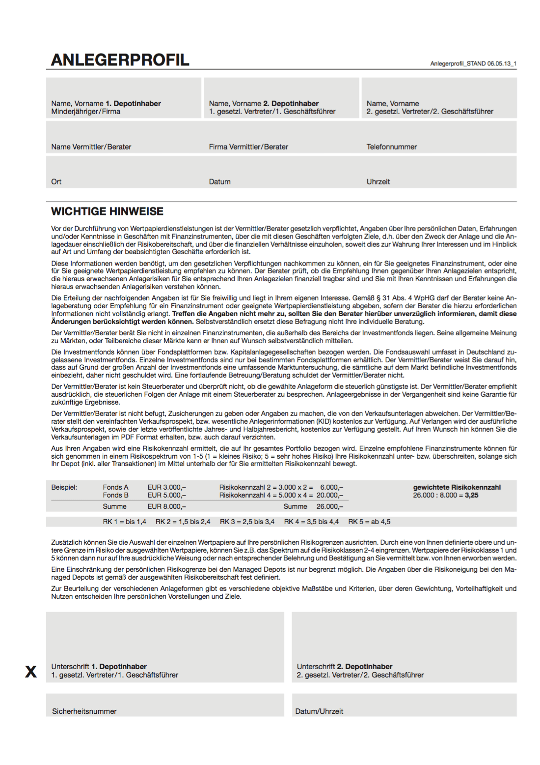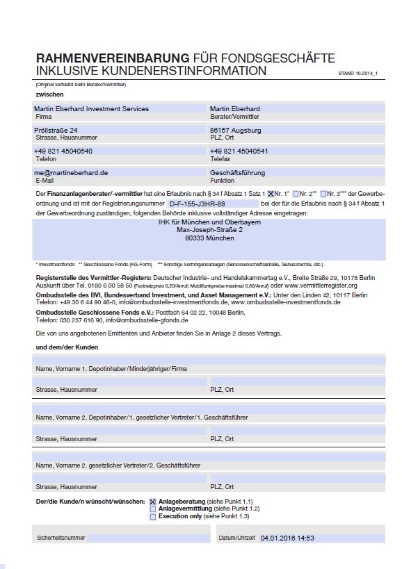 2. Schritt: Übermittelte Depotunterlagen ergänzen und unterschreiben